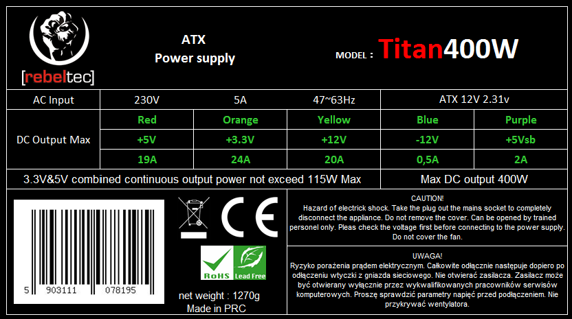 Zasilacz komputerowy TITAN 400